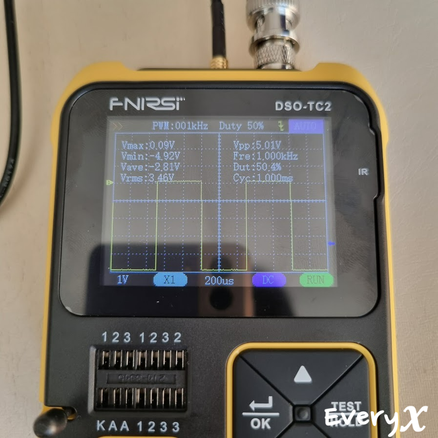 본체에 내장된 PWM 출력 단자에 직결해서 오실로스코프 테스트해 봤습니다.