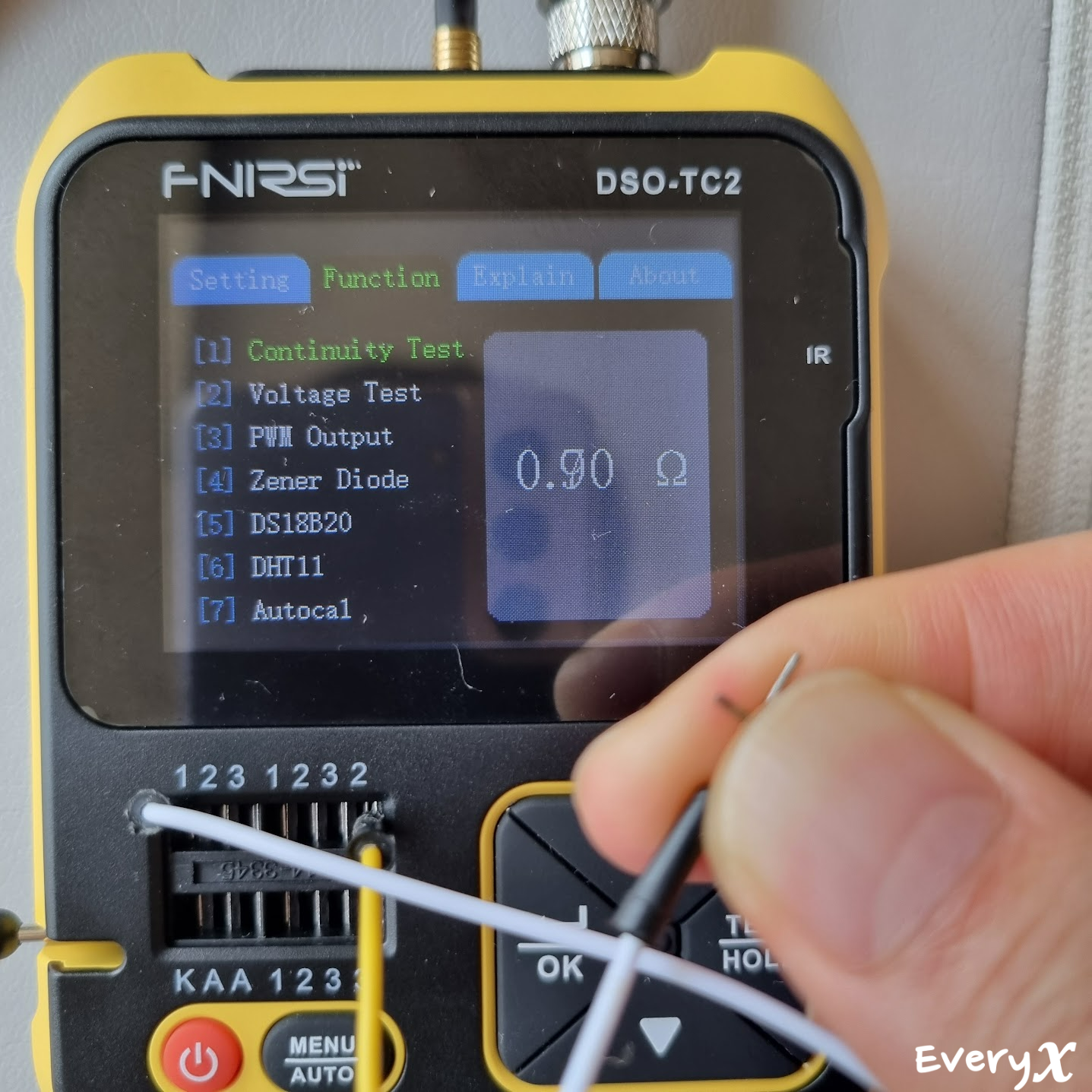 전면에 있는 1번과 2번 테스트 단자를 통해서 보통 테스트기에 있는 통전 테스트를 할 수 있습니다. 전압을 측정하는 첫 번째 MCX와 단자를 공유하면 더 좋았을 것 같은데 아쉽게도 케이블 연결이 불편해서 크게 유용한 기능은 아닐 것 같네요.