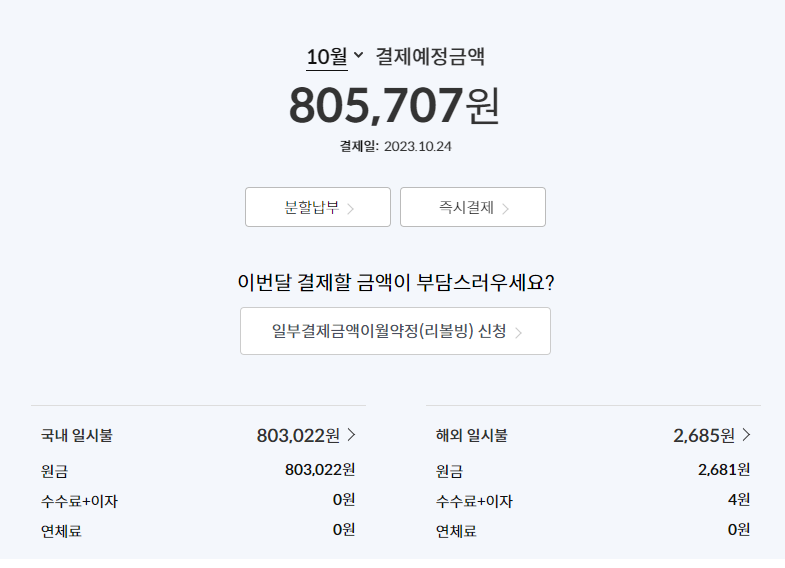 그럼 화면에 해외 일시불 사용 금액이 보이는데 이걸 누릅니다.
